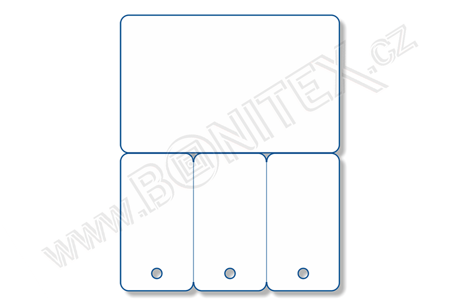 - wymiar: karta całkowita - 171,2 x 54 mm, breloki - 54 x 28,5 mm, grubość do uzgodnienia