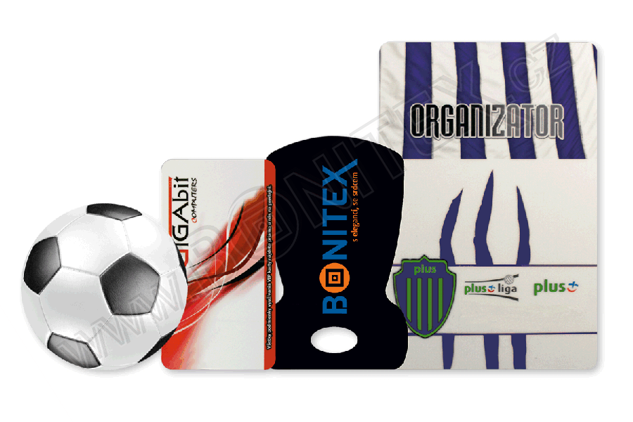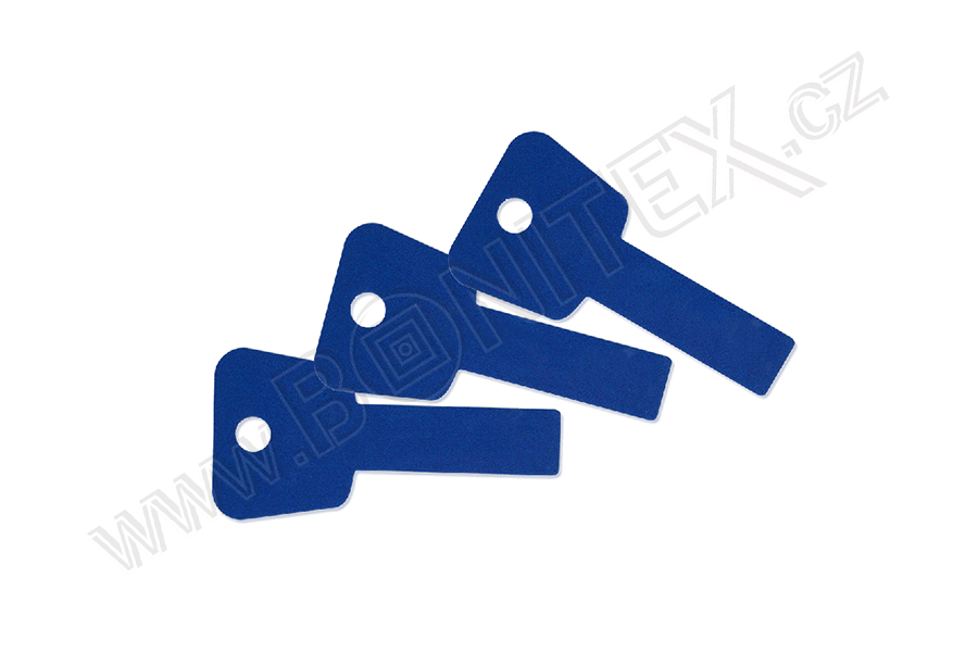 Atypische "Karte" in Form eines Schlüssels mit den Abmessungen 70 x 28 mm und Löchern zum Anhängen an den Schlüsselanhänger des Nutzers. Die gesamte Oberfläche kann für Werbeaufdrucke genutzt werden.
