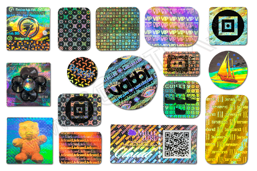 - Standard – nachträglich personalisierte Hologramme mit Thermodruck, teurer als nicht personalisierte, jedoch schwerer replizierbar. Sie können zum Beispiel mit einem goldenen/silbernen Logo oder anderem Zeichen, einer Zahlenreihe usw. personalisiert werden.