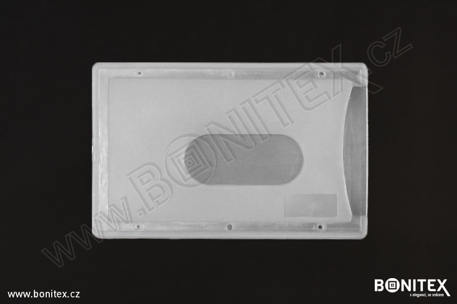 Plastové pouzdro na karty typu CR80 (kreditní karta), s rozměru 60x90 mm, základní tloušťky 3,5 mm, chrání karty před poškozením.