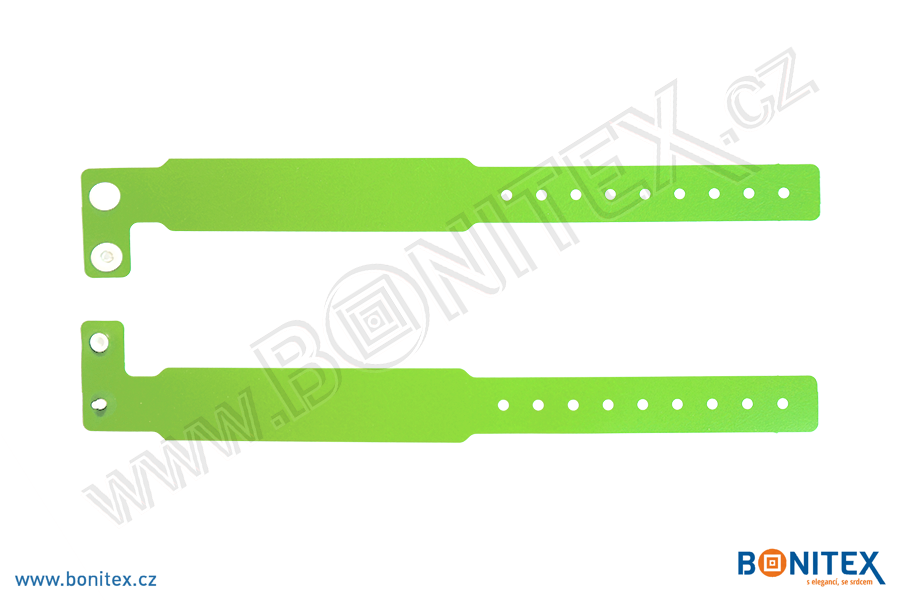 Jednorázový vinylový identifikační náramek, rozměru 245x19/25 mm, vhodný například k identifikaci osob v nemocnicích, sportovních zařízeních, na stadionech, koncertech a jiných společenských akcí.