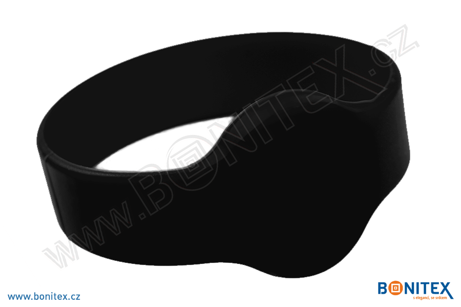 Silikonový identifikační náramek v černém provedení s průměrem 65 mm a RFID čipem NXP-Mifare S50(1k)-4b. Ideální pro přístupové a identifikační systémy v aquaparku, bazénech, saunách a dalších sportovních zařízeních.